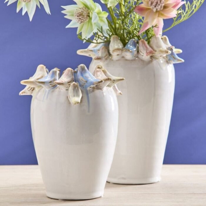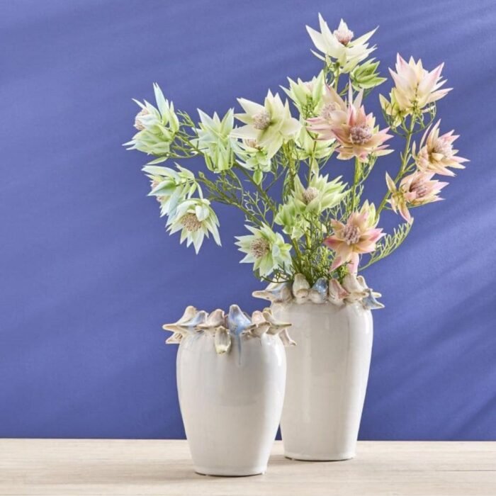 Made from high-quality stoneware, the vase features a smooth matte white finish that enhances its sculptural quality. The durable material ensures lasting beauty, while its neutral color palette allows for effortless styling across a range of aesthetics.