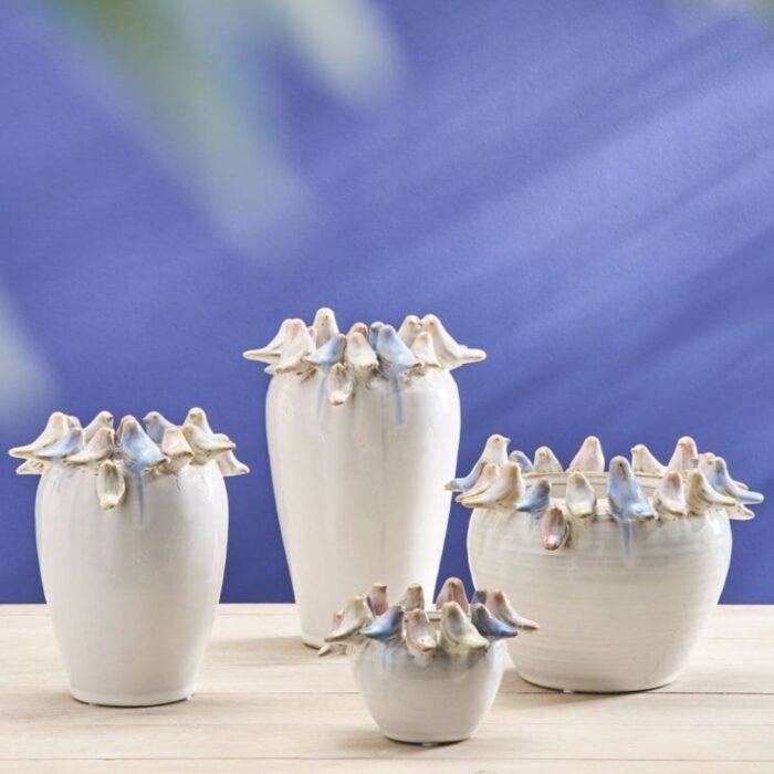 With its sculptural silhouette and minimalist charm, this vase blurs the line between art and utility. The soft, flowing curves and balanced proportions lend it a serene, contemporary character—perfect for interiors that embrace simplicity and thoughtful design.