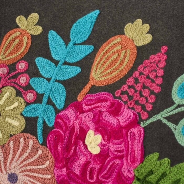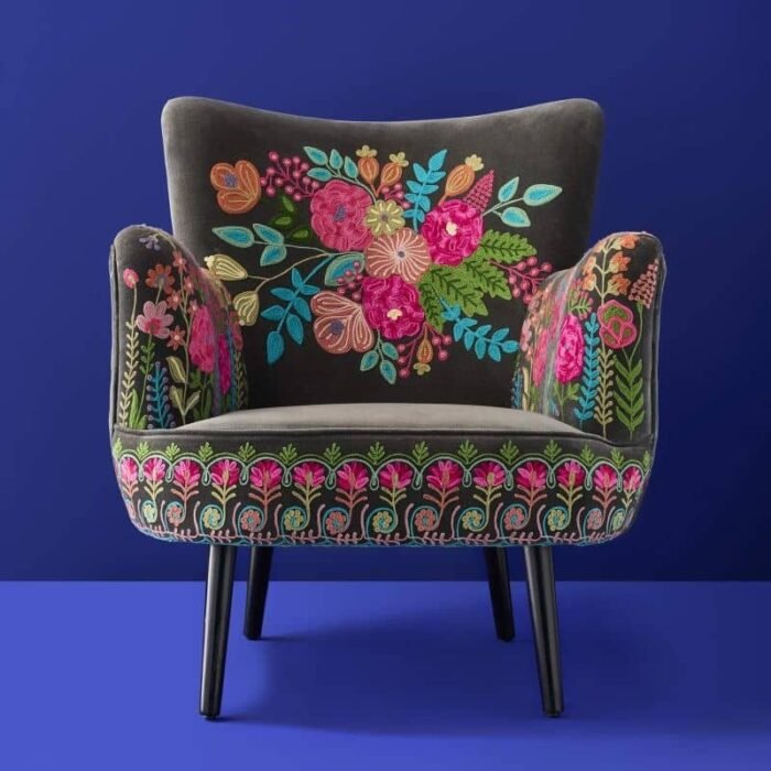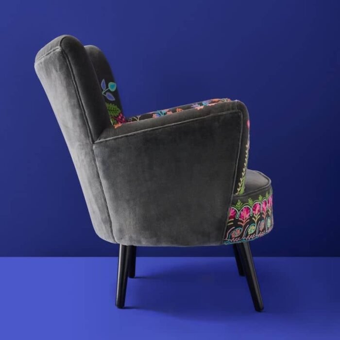 VELVET ARMCHAIR WITH FLORAL DESIGN LOTTE GRAY HAND-EMBROIDERED