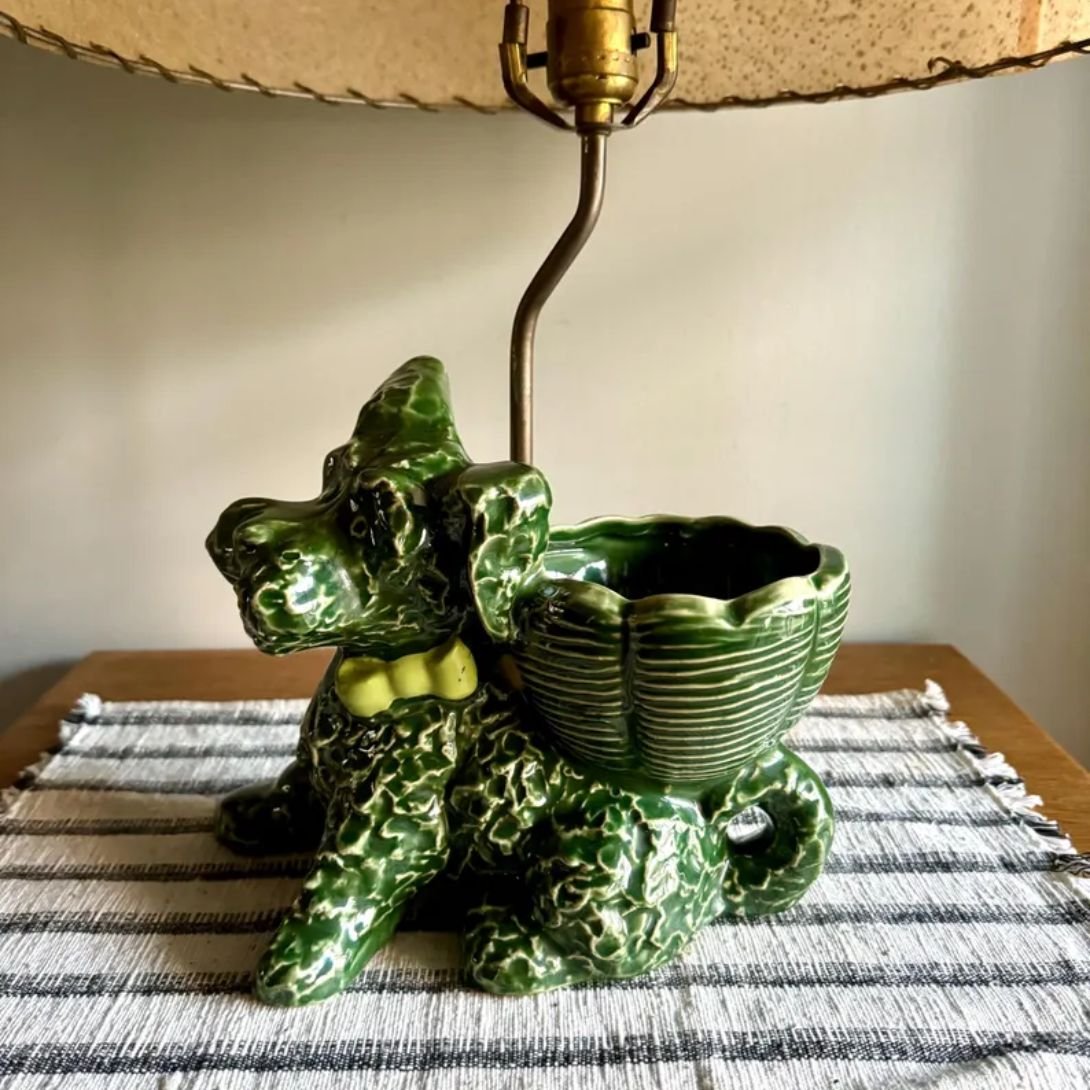 Home Lamps VINTAGE GREEN CERAMIC SCOTTY DOG LAMP